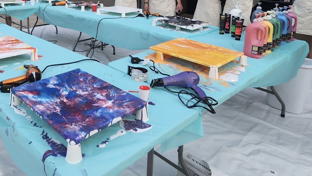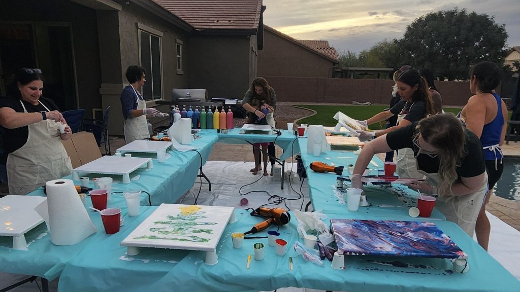 That’s why I created ANartist—so you can skip the stress and just show up. I bring everything—drop cloths, tables, canvases, hair dryers, power strips, and even a backup battery (because let’s be honest, circuit breakers can be traitors). Pro tip: hair dryers won’t trip a breaker when the heat is off—yeah, I’ve got you covered.